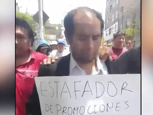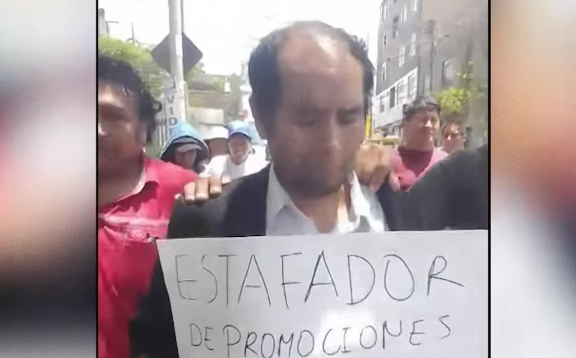 Un grupo de padres de familia de diversos colegios en Lima Este logró detener a Jerson Naun López Márquez, acusado de estafar más de 10 mil soles mediante servicios de fiestas de promoción. Según las denuncias, el sujeto se presentaba como dueño de la empresa “El Márquez del Centro” y utilizaba diferentes logos y nombres para captar clientes. Padres de instituciones como Señor de los Milagros de Ate Vitarte, Leoncio Prado 12282 y Escuela 0024 se unieron para denunciarlo públicamente en la Depincri de Ate.