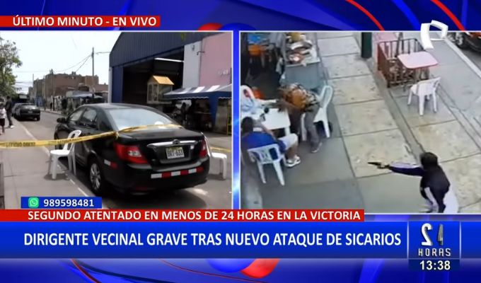 Un nuevo ataque de sicarios se registró en el distrito de La Victoria, donde un dirigente vecinal fue atacado a balazos por un sujeto desconocido, cuando tomaba desayuno en horas de la mañana de este miércoles 8 de enero.