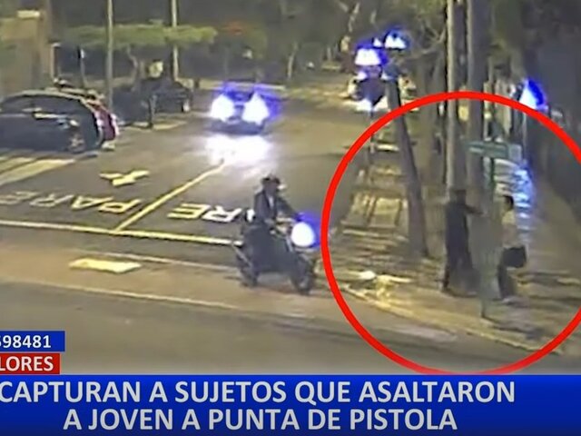 Serenos del distrito de Miraflores lograron capturar a un delincuente que minutos antes había sido captado por las cámaras de seguridad asaltando, junto a su cómplice, a un joven mientras lo apuntaban con un arma desde una motocicleta.