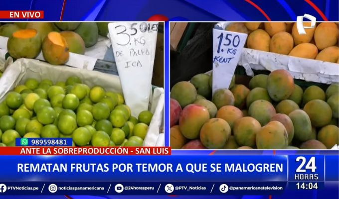 En declaraciones para 24 Horas Mediodía, uno de los comerciantes, quien viene ofreciendo el kilo de mango a 2 soles, señaló que el precio de esta y otras frutas está muy por debajo de lo habitual, lo cual viene generándoles pérdidas.