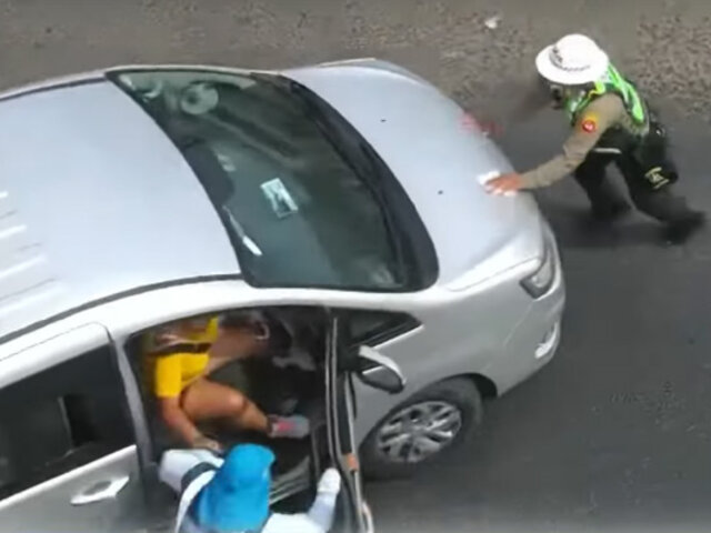 Al percatarse del hecho, los otros agentes intentando detener el vehículo infractor, sin embargo, a pesar de sus esfuerzos y en una abierta desobediencia a la autoridad, el conductor identificado como Belisario Huaroc León pisó el acelerador y los empujó.