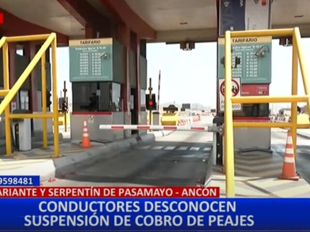La empresa concesionaria Norvial, que opera el tramo Ancón-Huacho-Pativilca en la Panamericana Norte, anunció la suspensión temporal del cobro de peajes en las garitas de la Variante y el Serpentín de Pasamayo por un periodo de seis días.
