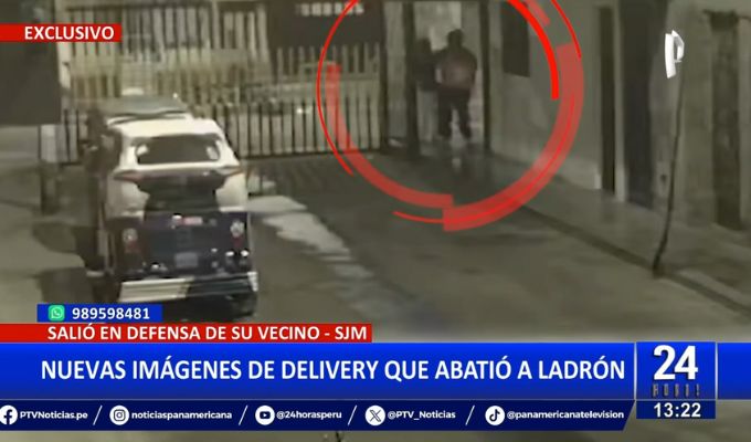 Panamericana Televisión accedió en exclusiva a las imágenes de las cámaras de seguridad que registraron el incidente ocurrido en San Juan de Miraflores, donde un repartidor de delivery acabó con la vida de un delincuente, aparentemente, en defensa propia.