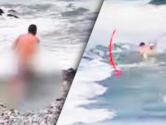 El efectivo de la División de Hálcones de Centro de la PNP, no dudó en enfrentar las embravecidas olas y nadando con mucha fuerza llegó hasta el hombre que estaba presa de un ataque de terror.