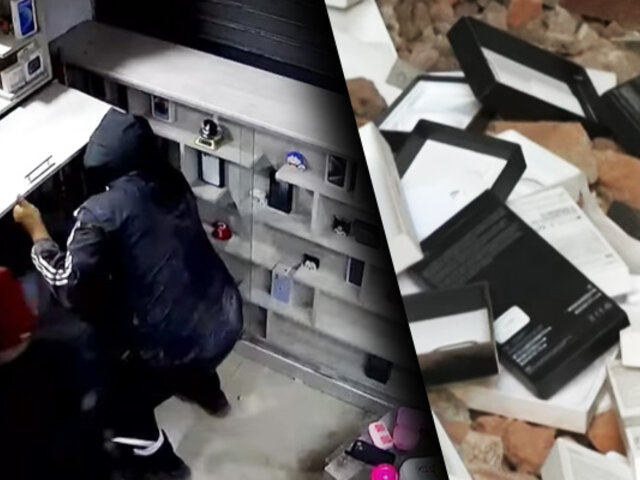 En las cámaras de seguridad se observa a los ladrones cargando con costosos teléfonos de alta gama que meten dentro de una bolsa de rafia.