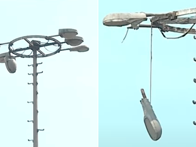 Luminaria de poste en Panamericana Sur corre riesgo de caer