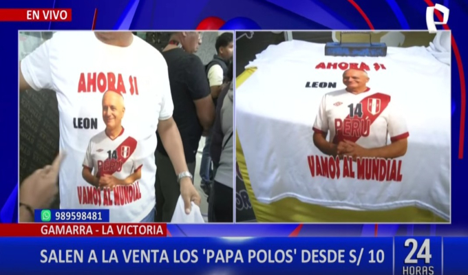 Un equipo de 24 Horas acudió al emporio comercial y pudo conocer las curiosidades de los costureros. En una de las indumentarias se pudo observar la imagen del Papa León XIV con la camiseta de la Selección Peruana y la frase llamativa: Ahora si vamos al Mundial.