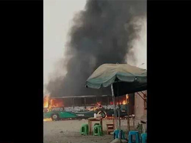 El fuego se desató tras una explosión que se registró debajo de un bus. Según se conoció, una persona de la empresa resultó herida, fue trasladada inmediatamente al hospital Sergio Bernales, se desconoce su estado de salud.