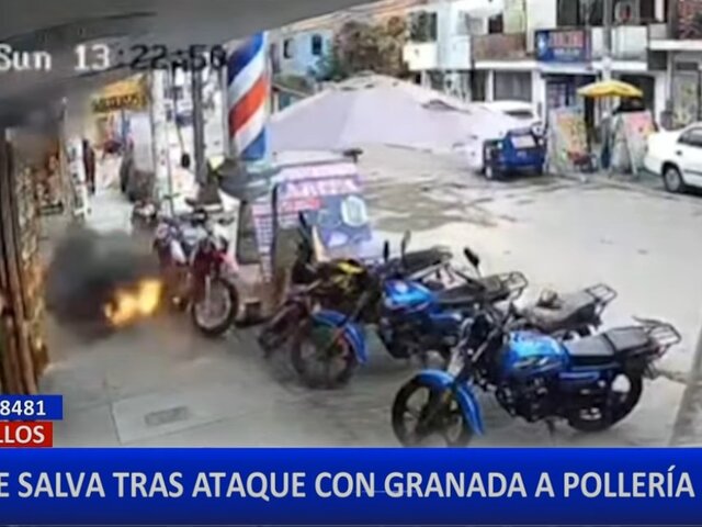 Un atentado estuvo a punto de cobrar la vida de una madre y su pequeña hija en el distrito limeño de Chorrillos, cuando dos delincuentes a bordo de una motocicleta arrojaron una granada contra una pollería ubicada en la avenida San Martín. El hecho ocurrió la tarde de ayer lunes.