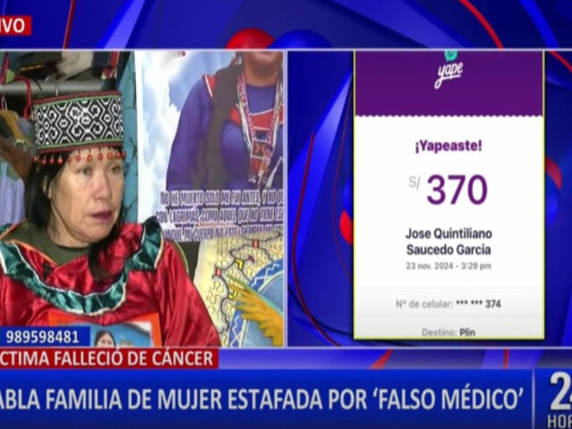 Luego de su intervención, una de sus víctimas identificada como Olinda Silvano, brindó detalles a 24 Horas Mediodía sobre el modus operandis que utilizaba Saucedo García para sacarle dinero a la familia, a cambio de atención para su pariente que estaba internada en un establecimiento de salud de la selva peruana.