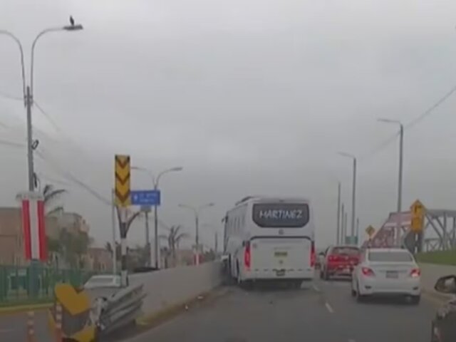 Un bus turístico estuvo a punto de provocar una tragedia esta mañana luego de chocar violentamente contra el muro de la rampa de subida que conduce al nuevo terminal del Aeropuerto Internacional Jorge Chávez, por la avenida Morales Duárez.