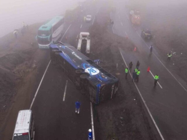 Dos buses interprovinciales y al menos cuatro vehículos particulares colisionaron en medio de neblina y exceso de velocidad.