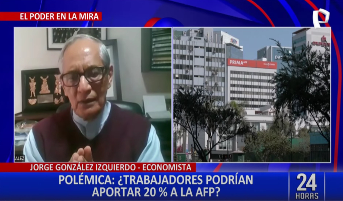 “La ley actual obliga al 10% mensual al trabajador formal. Si quieres tener una pensión digna por lo menos es un 70% de los ingresos que has tenido en los últimos años mensual (…) El 10% actual hay que llevarlo de forma progresivo. Pienso que el 20% es excesivo”, declaró a 24 Horas.