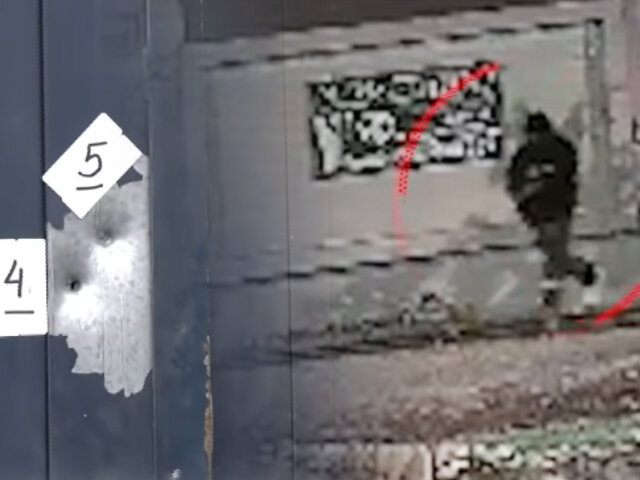 En el lugar de la balacera, peritos de criminalística de la PNP ubicaron 8 disparos en el portón del centro deportivo donde funcionan dos canchas de grass sintético.