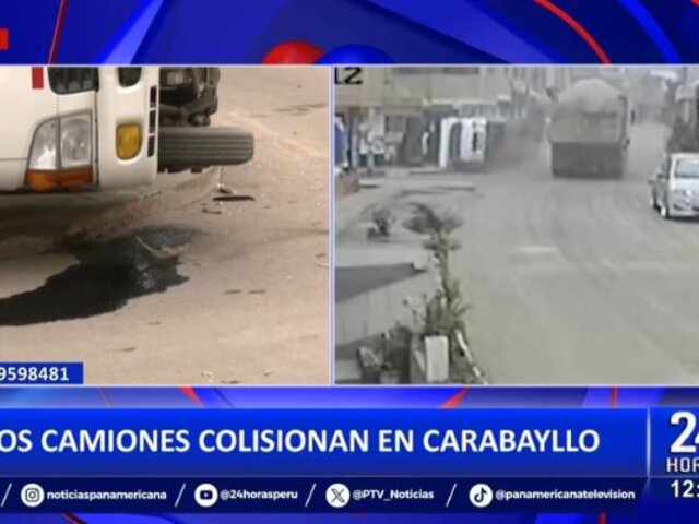 Un accidente de tránsito se registró en el distrito de Carabayllo, donde un camión carguero terminó volcándose tras colisionar con un enorme volquete en el cruce de los jirones Santa Rosa y Santa Elena.
