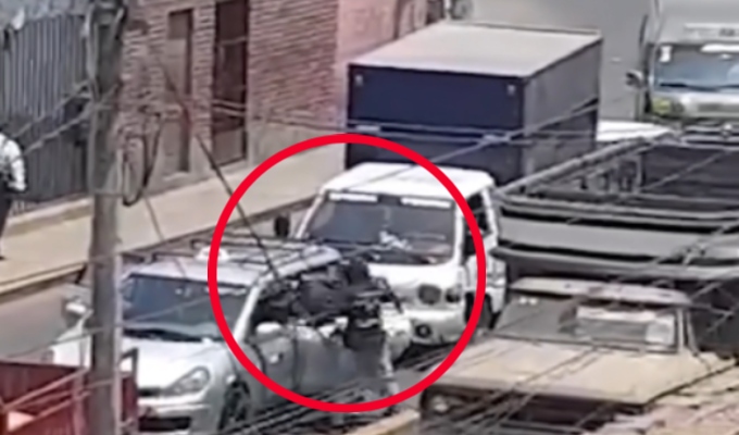 Las cámaras de vigilancia captaron el preciso momento en que los delincuentes rodeaban un vehículo particular. Su víctima, una trabajadora social, relató aterrada cómo, detenida por el semáforo en rojo, fue atacada por ambos flancos.