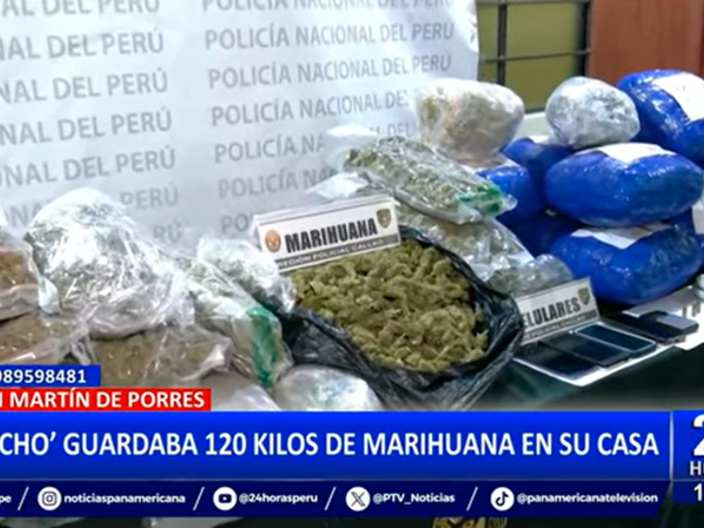 Un operativo policial llevado a cabo en el distrito de San Martín de Porres permitió la incautación de aproximadamente 120 kilos de marihuana y la detención de dos adultos y una adolescente. Todo comenzó cuando agentes de la Policía Nacional del Perú intervinieron a un sujeto identificado como Enrique Cabrera, alias "Nacho", quien salía de su vivienda con cuatro kilos de esta droga en su poder.