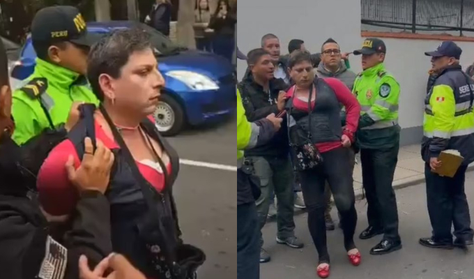 El sujeto disfrazado de mujer permanece detenido en la comisaría de Miraflores tras ser descubierto este viernes dentro del colegio Mater Purissima, presuntamente filmando a escolares durante un desfile por Fiestas Patrias.
