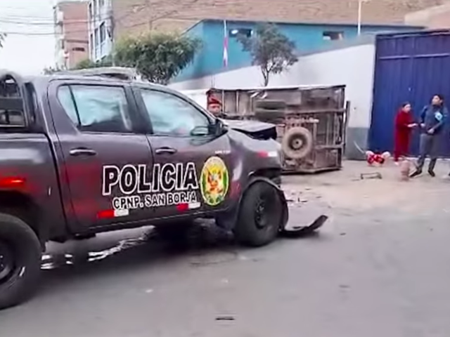 Un violento accidente de tránsito ocurrió en la intersección de los jirones Leonardo Barbieri y Manuel Iribarren, en el distrito de Surquillo. Un patrullero de la Policía Nacional del Perú (PNP), que trasladaba a un detenido a gran velocidad, impactó frontalmente contra una furgoneta dedicada a mudanzas, provocando alarma entre los transeúntes.
