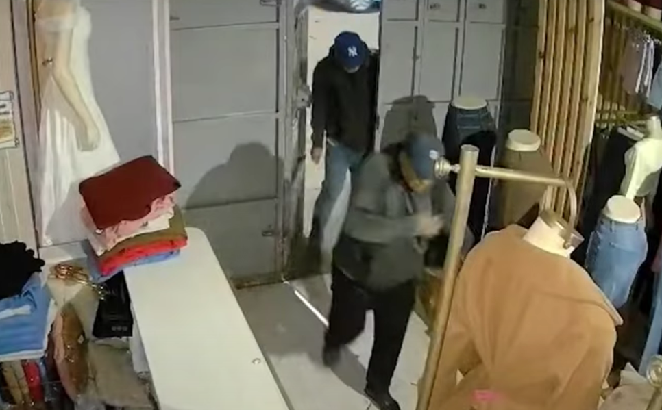 Las cámaras de seguridad registraron el momento en que uno de los sujetos entra con el rostro descubierto, pero al percatarse de la grabación se coloca un gorro y una mascarilla. Su cómplice, vestido completamente de negro, inicia el atraco. Más de una hora y media después, uno de ellos salta el counter y mueve el ángulo de la cámara para evitar dejar más evidencias.