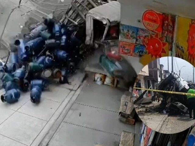 En esta ocasión, el camión no solo cobró vidas, sino que además destruyó parte de una vivienda, derribó un poste de luz y dejó esparcidos decenas de cilindros de gas sobre la vía, lo que generó pánico entre los vecinos por el peligro de explosiones. Personal policial y serenazgo acudió rápidamente para acordonar la zona.