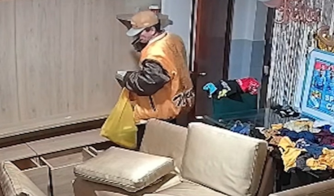 El delincuente había forzado la puerta principal con un destornillador, luego trepó hasta el tercer piso e ingresó por una ventana. Dentro de la vivienda permaneció por más de 14 minutos, revisando cajones y muebles, mientras llenaba una bolsa con objetos de valor. Incluso bebió licor del minibar de la familia antes de ser descubierto.