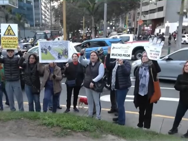 La protesta, realizada el último sábado, reunió a cerca de 50 personas que portaron pancartas y exigieron respeto por el carácter turístico de Miraflores. “Nunca nos consultan, solo hacen lo que les conviene”, manifestó otra vecina indignada.