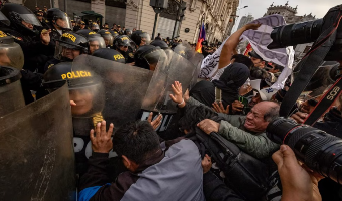 El despliegue de 5.000 efectivos policiales no evitó que los enfrentamientos escalaran. En la avenida Abancay, los manifestantes intentaron avanzar hacia el Congreso, respondiendo con piedras y botellas a las bombas lacrimógenas y perdigones lanzados por los agentes.