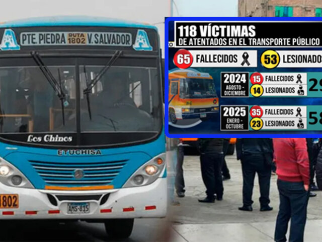 La cifra de víctimas de extorsión en el sector transporte sigue en aumento en la capital. Según el Ministerio Público, entre el 2024 y lo que va del 2025 se han registrado 118 víctimas de atentados vinculados a redes criminales que operan en este rubro. Del total, 65 conductores perdieron la vida y 53 resultaron heridos, una cifra alarmante para el sector.