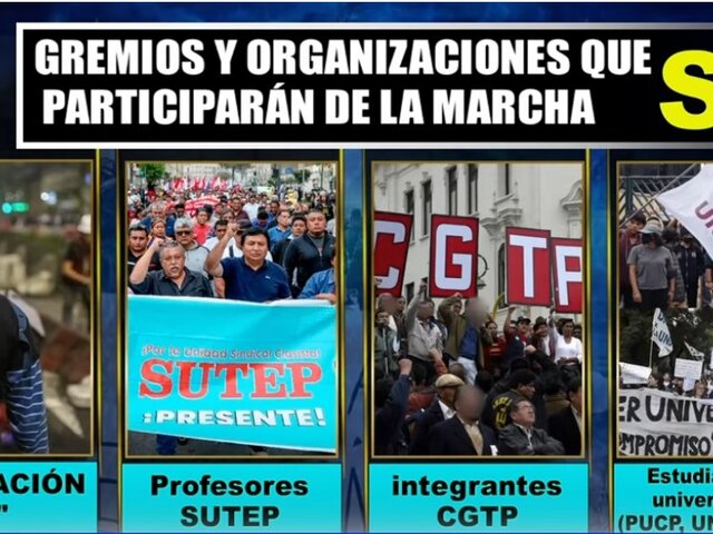 Entre los colectivos que se han sumado a la convocatoria figuran los docentes del SUTEP, integrantes de la CGTP y estudiantes de universidades como la Pontificia Universidad Católica del Perú, la Universidad Nacional Mayor de San Marcos y la Universidad Nacional de Ingeniería.
