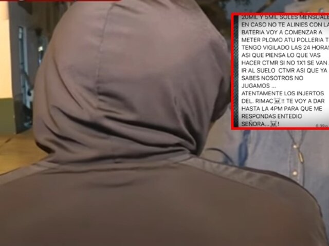 Un empresario del rubro de restaurantes en el distrito del Rímac vive momentos de temor tras ser nuevamente víctima de extorsionadores que se identifican como 'Injertos del Rímac', quienes le exigen una alta suma de dinero.