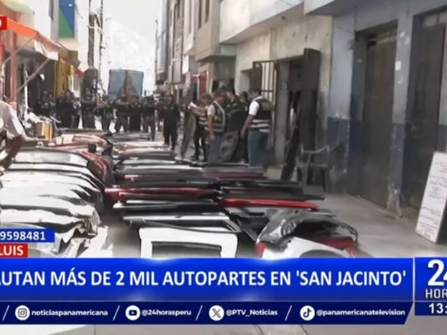 En el marco del estado de emergencia, agentes de la Policía Nacional del Perú (PNP) realizaron un mega operativo donde incautaron gran cantidad de autopartes en el mercado informal conocido como "San Jacinto", en el distrito de San Luis.