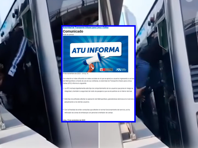 Frente a lo sucedido, la Autoridad de Transporte Urbano (ATU) difundió un comunicado rechazando tajantemente la conducta de estos dos pasajeros. Además, anunció que reforzará la presencia de orientadores en campo para prevenir que comportamientos de este tipo vuelvan a repetirse en estaciones con mayor afluencia.