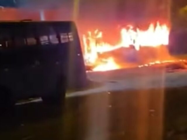 En plena oscuridad de la madrugada, dos sujetos a bordo de una motocicleta incendiaron dos buses de la empresa de transportes Estrella SAC en la avenida Bertello, en San Martín de Porres. Las unidades, estacionadas frente al paradero inicial de la línea, quedaron completamente calcinadas.