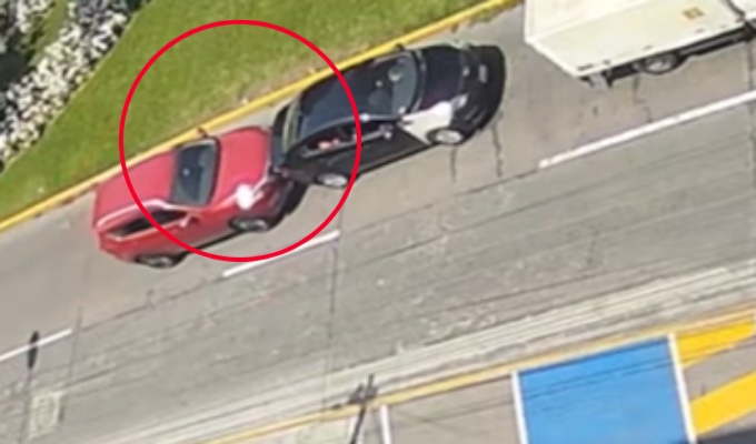 Según cámaras de seguridad, el vehículo rojo impactó de manera violenta contra el auto negro, que permanecía detenido por la luz roja. Tras el choque, el afectado salió de su unidad para constatar los daños y reclamar al responsable, pero este reaccionó de manera agresiva e intentó atropellarlo.