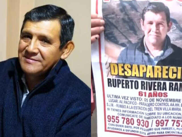 La familia de un obrero de 61 años denuncia que la Policía Nacional del Perú (PNP) no estaría avanzando en las investigaciones sobre su desaparición ocurrida hace un mes en San Juan de Miraflores (SJM). Según relatan, el hombre identificado como Ruperto Rivera, fue visto por última vez el 5 de noviembre, cuando salió de su vivienda rumbo a su trabajo, como lo hacía diariamente.