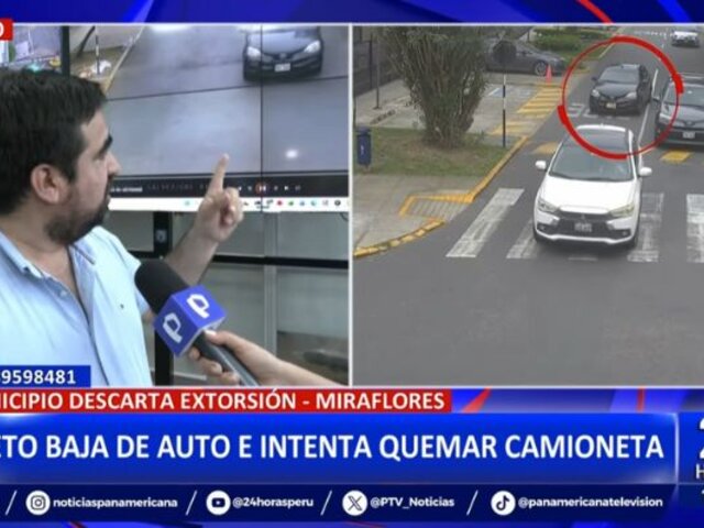 En el distrito de Miraflores, cámaras de seguridad del Municipio registraron el preciso instante en que un sujeto desciende de su vehículo para prenderle fuego a una camioneta. El hecho ocurrió en horas de la mañana de este martes.
