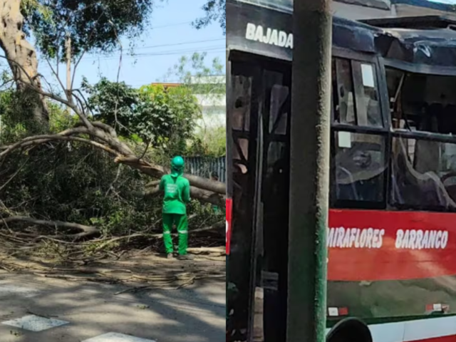 Momentos de pánico se vivieron la mañana de este martes en la avenida Pedro de Osma, en el distrito de Barranco, cuando una pesada rama de aproximadamente ocho metros de altura se desprendió de un árbol y cayó directamente sobre un bus de transporte público que circulaba por la zona. El incidente ocurrió pasadas las 11 de la mañana y dejó al menos un pasajero herido dentro de la unidad.