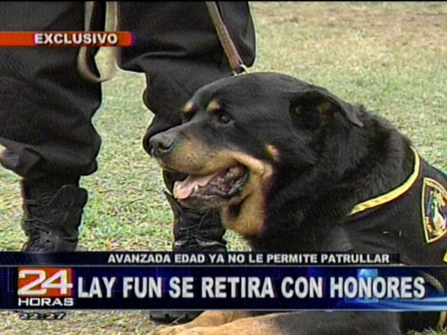 El celebre perro guardián de una cochera en el Cercado de Lima “Lay Fun”, quien después de proteger ferozmente el lugar donde vivía pasó a formar parte de la Policía Canina fue retirado del servicio por cumplir la edad limite 9 años.