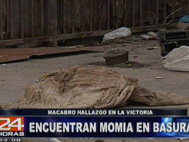 Macabro hallazgo en el distrito de La Victoria. Un obrero halló un cadáver momificado en un basural de ese distrito. 24 Horas.