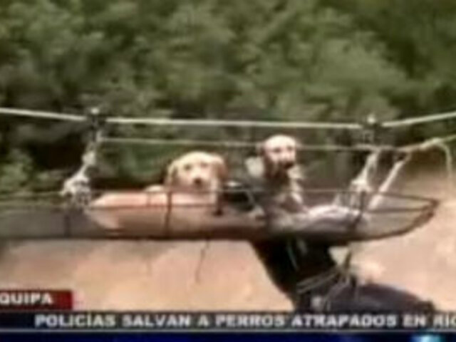 Arequipa: policías arriesgan sus vidas para rescatar a perros atrapados en río