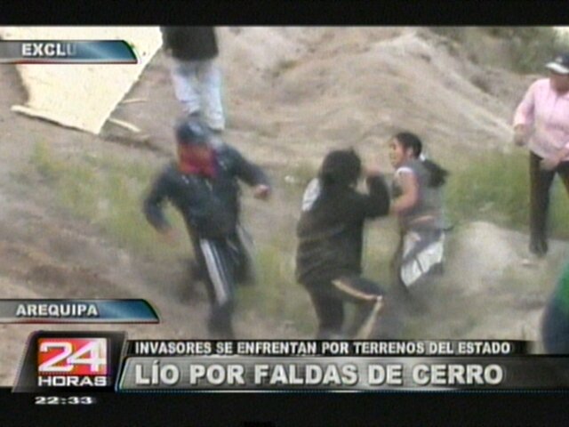 En las noticias nacionales de 24 Horas destaca la pelea entre pobladores de Arequipa por la disputa de terrenos en la ciudad blanca, mientras que en Huancayo una niña intenta quitarse la vida subiéndose a un poste de luz.
