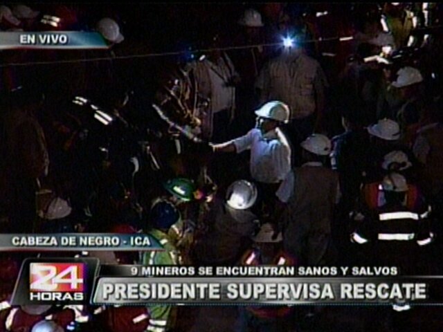 Vestido con una camisa blanca, el jefe de Estado llegó hasta la mina Cabeza de Negro, en Ica, aproximadamente a las 7.00 p.m. e inició el rescate final de los obreros sepultados bajo tierra desde el jueves último.