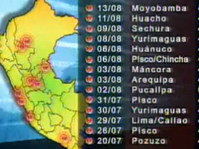 Unos 130 sismos se han registrado hasta la fecha en todo el Perú