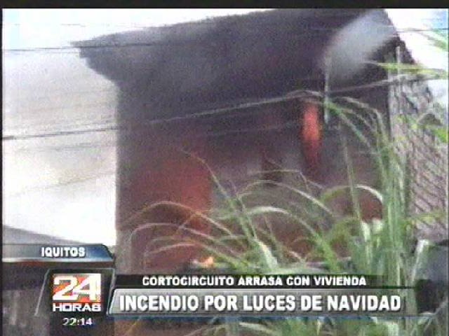Un incendio arrasó con una vivienda en Iquitos. Un corto circuito en las luces de navidad habría iniciado el fuego.