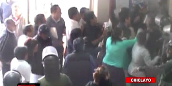Decenas de trabajadores tomaron la sede del municipio de José Leonardo Ortiz, en Chiclayo. Ellos exigían que se cumpla con el pago de sus beneficios laborales