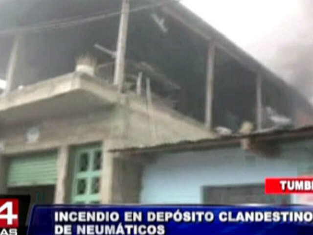 Un voraz incendio se desató esta mañana en un depósito ilegal de llantas para vehículos de carga pesada. El siniestro mantuvo en alerta a los pobladores de la calle Elías Aguirre del AA.HH. Miguel Grau en Tumbes.