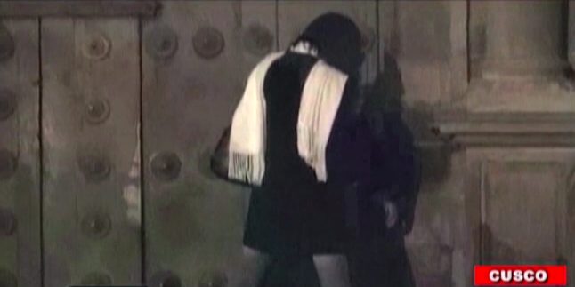 Fiestas de fin de año: utilizan la puerta de la Catedral del Cusco como baño público
