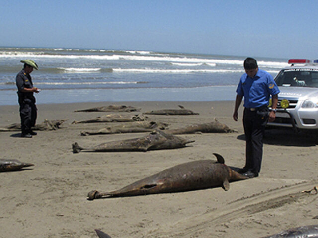 Cerca de 47 animales marinos fueron encontrados varados y sin vida en Puerto Eten. Entre otros, se hallaron aves y mamíferos como lobos marinos y delfines. También se encontró dos esqueletos de delfines con signos de haber sido sacrificados en alta mar.