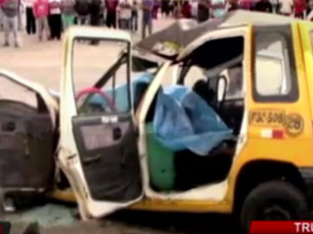 Tres muertos dejó el aparatoso choque entre un tico y una cúster en la Panamericana Norte, en Trujillo.
